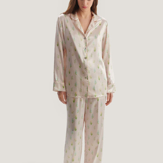 Пижама классическая с кантом цветы и линии: розовый