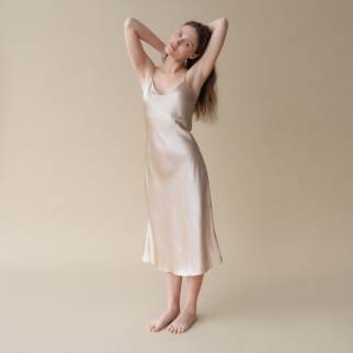 Шелковое платье-комбинация классический бежевый