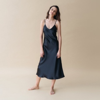 Шелковое платье-комбинация глубокий черный