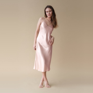 Шелковое платье-комбинация карамельный