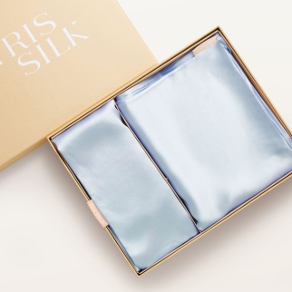 Шелковая маска для сна серебристо-голубой