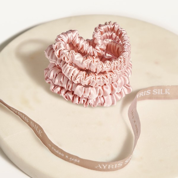 Шелковые резинки узкие 4 шт. розовая пудра