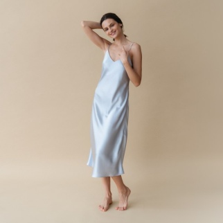 Шелковая Идеальная длинная сорочка серебристо-голубой