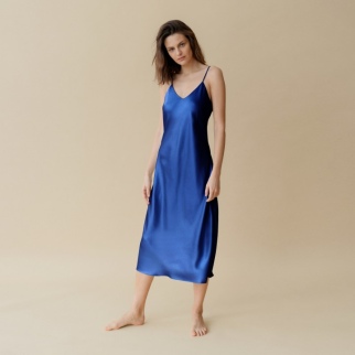Шелковая Идеальная длинная сорочка Королевский синий