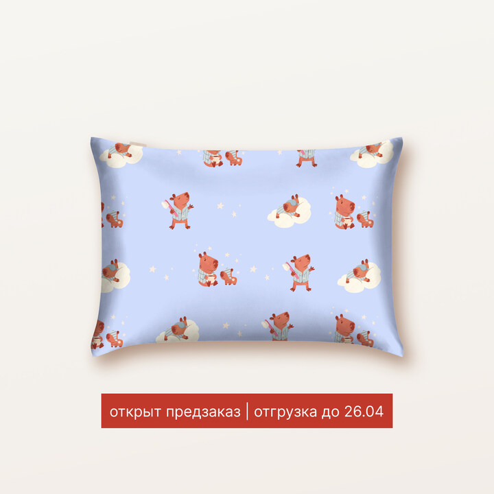 Наволочка 40х60 для подушки детского размера из фирменного шёлка Капибары. Голубой